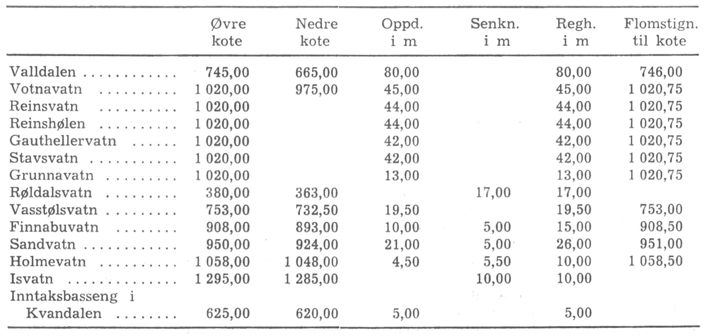 1) I punkt 1 under angivelsen av magasinenes reguleringsgrenser tilføyes: