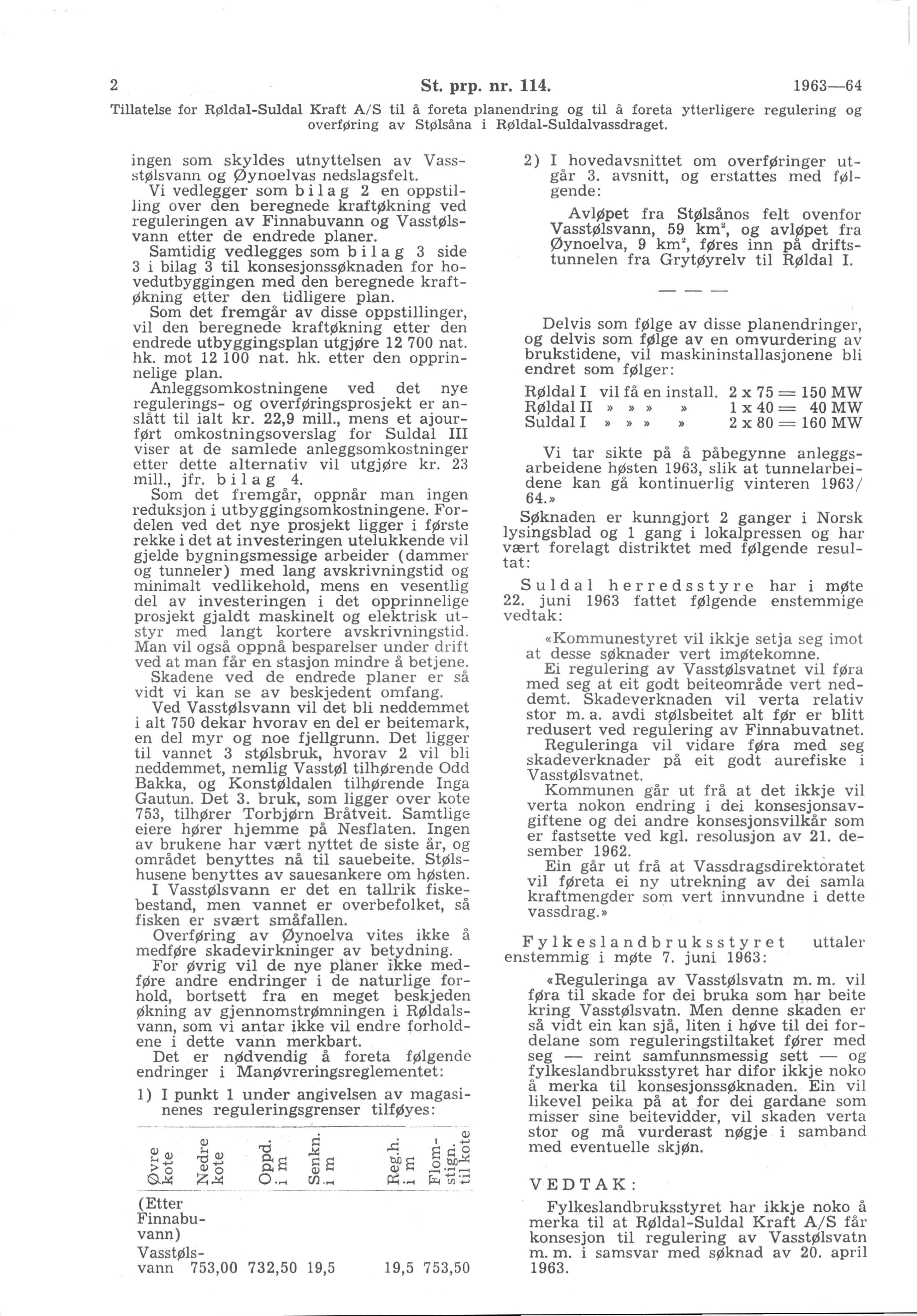 Fylkeslandbruksstyret har ikkje noko å merka til at Røldal-Suldal Kraft A/S får konsesjon til regulering av Vasstølsvatn m. m. i samsvar med søknad av 20. april 1963.»