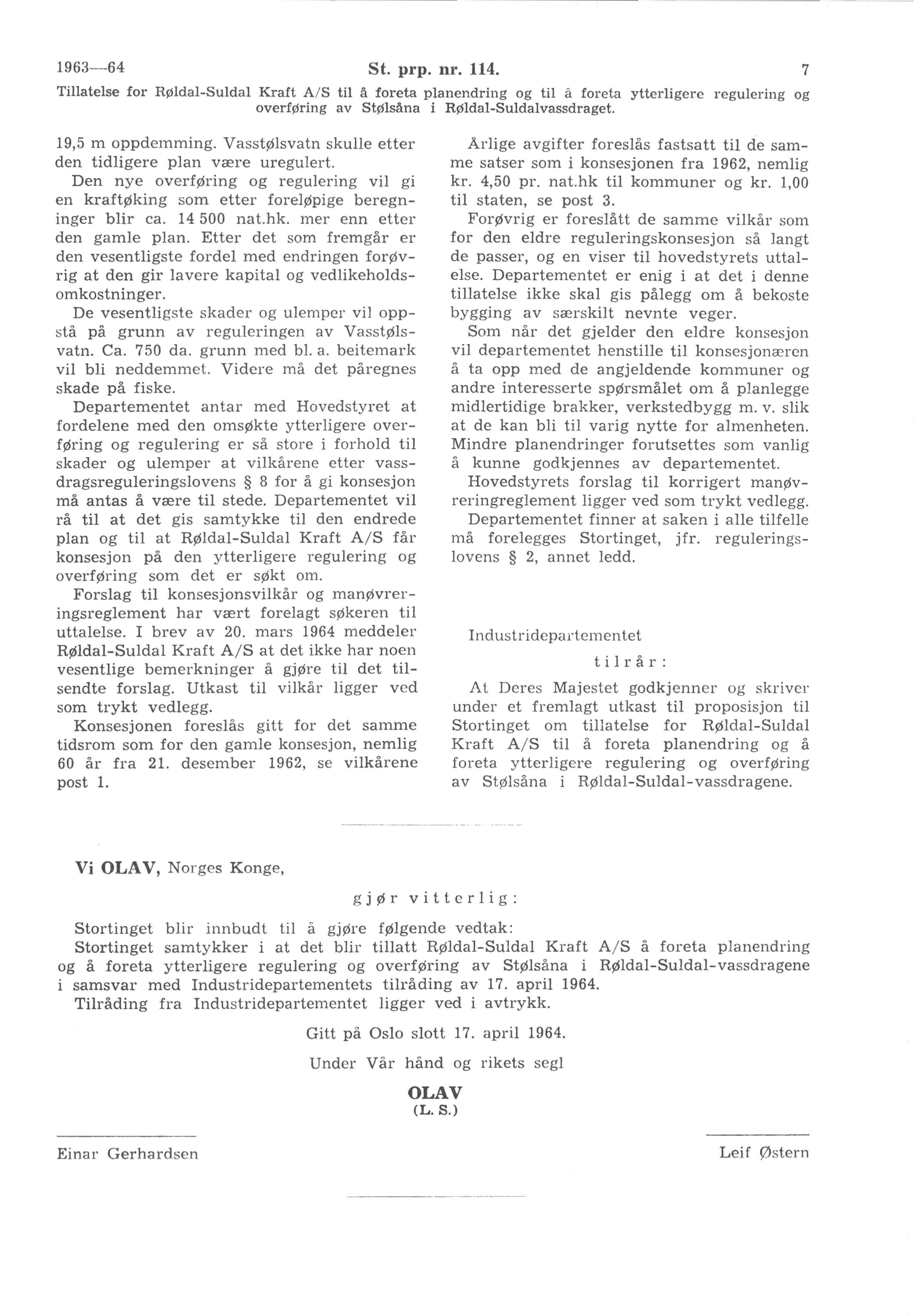 Tilråding fra Industridepartementet av 17. april 1964, godkjent ved kongelig resolusjon samme dag.