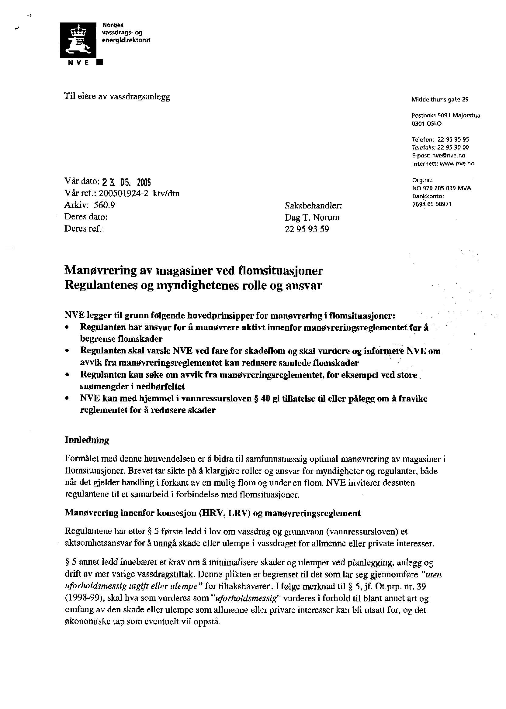 - 2005-05-23 NVE-brev manøvrering av magasiner i flomsituasjoner