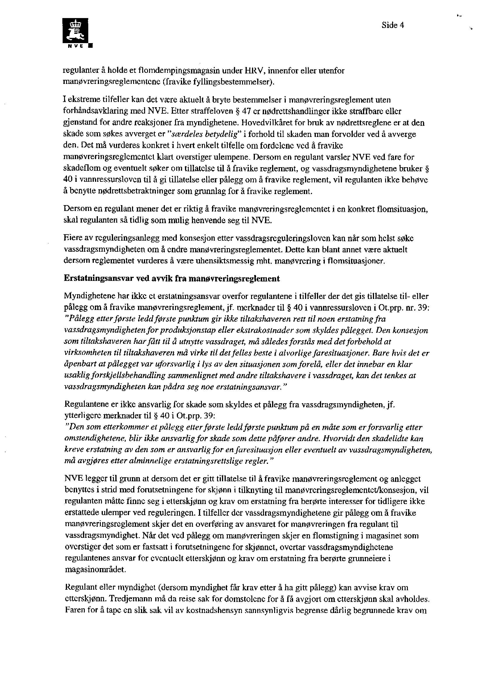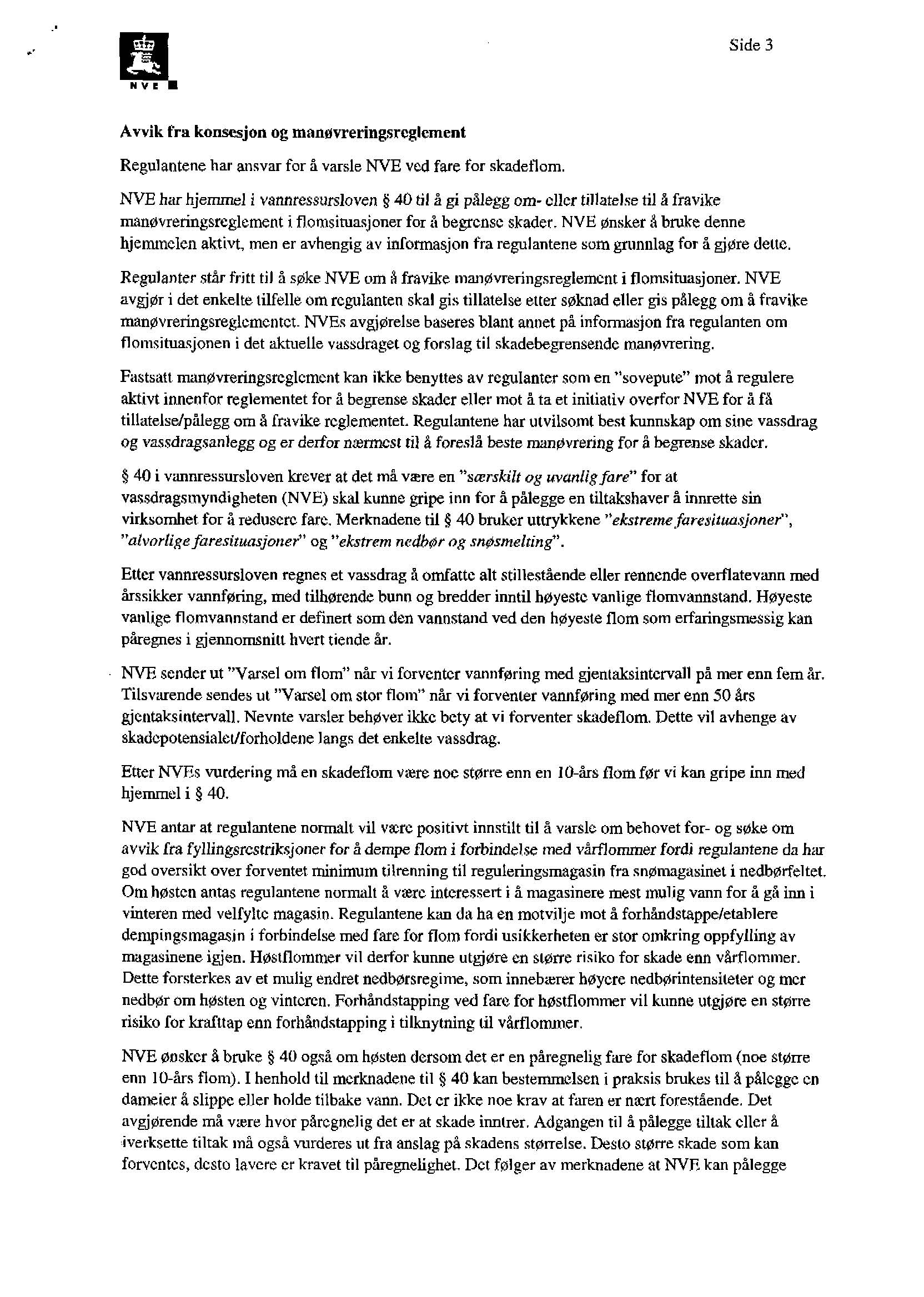 NVE sender og har sendt ut flere brev til regulantene bl.a mht flomhåndtering, et eksempel er vedlagt.