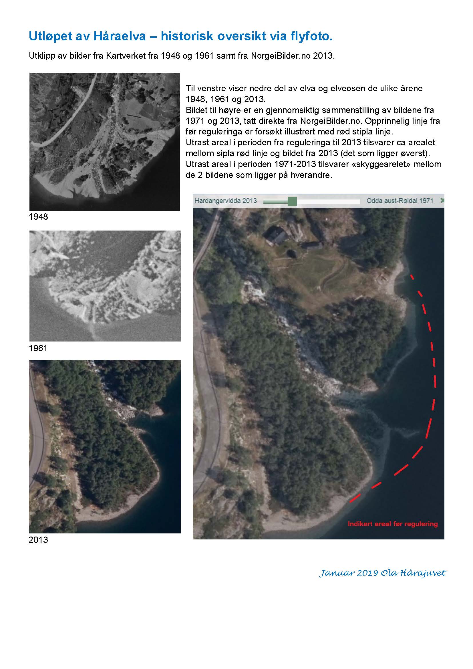 Historikken ved selve utløpet vises greit i vedlegget (2019-01 Utløpet av Håraelva, kort bildehistorikk).