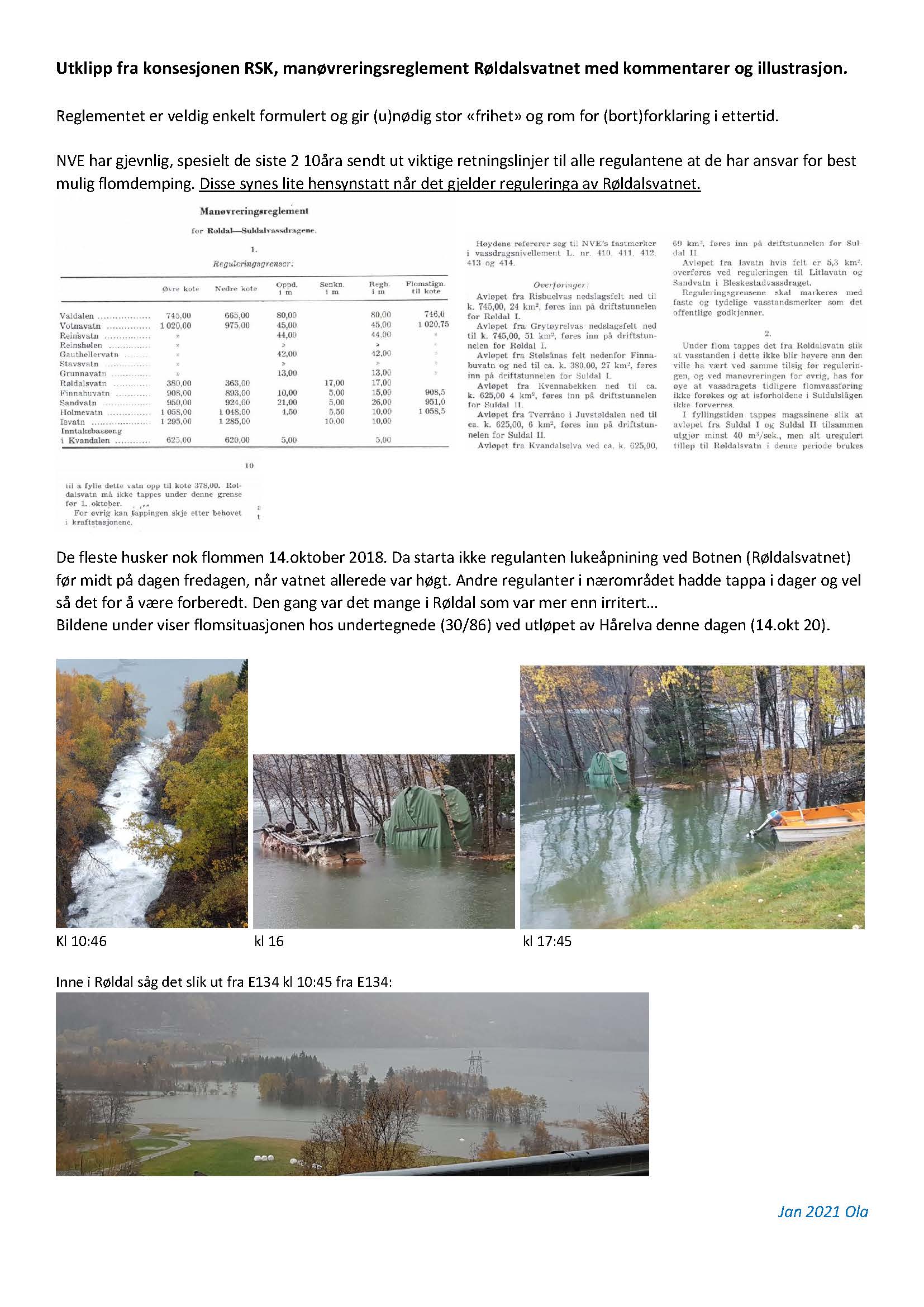 Reguleringsbestemmelsene for manøvrering av Røldalsvatnet er dessuten alt for uklare og upresise. Slik vi har sett det praktisert de siste åra, bl.a uten respekt for for henstillinger og formelle og uformelle ansvar ihht flom og flomproblematikk, er negativ for alt i randsonene rundt vatnet, se vedlegg med utklipp fra manøvreringreglene og bildevedlegg fra 2018.