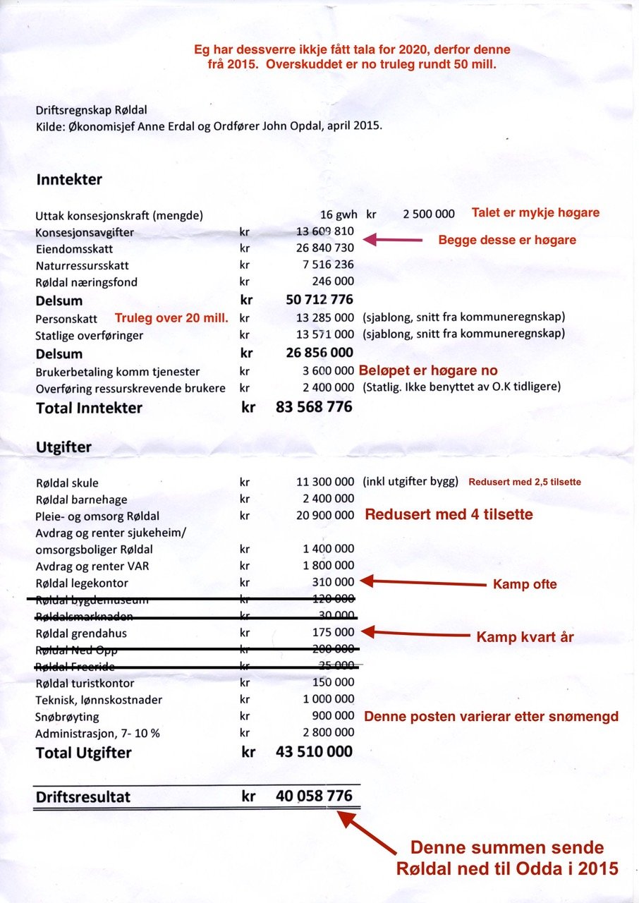 Ut frå dette er overskotet frå Røldal meir enn 50 millionar når alt er betalt – kvart år. Og meir vert det etter kvart som funksjonar vert lagde ned og inntektene frå kraftselskapet aukar.